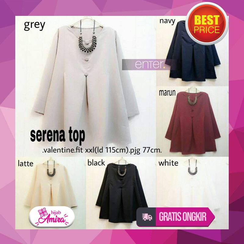 Baju Muslim Blouse Tunik Atasan Muslim Wanita Serena Top . Sumber Gambar : shopee.co.id